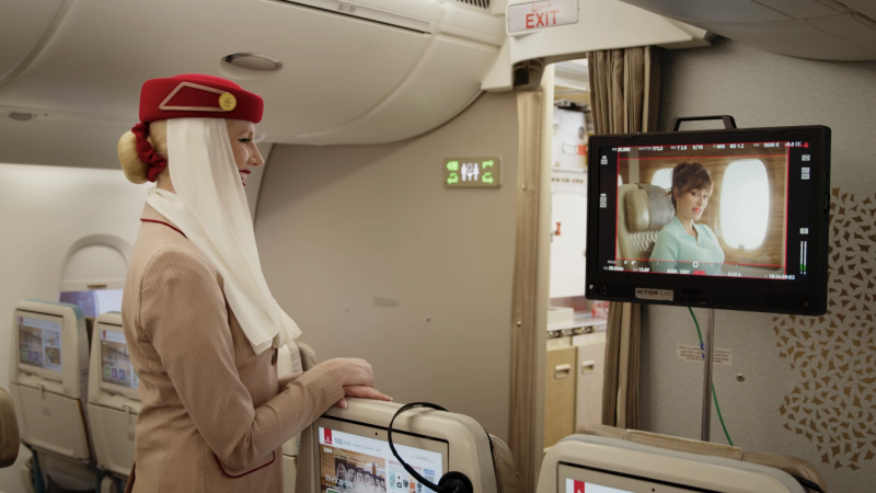 Enquanto a campanha publicitária da Emirates e Penélope Cruz é exibida nas telas de TV de vários países em inglês e espanhol, a Emirates lança um vídeo exclusivo dos bastidores mostrando a vasta produção necessária para uma campanha de TV filmada em um enorme aeronaves, bem como a tripulação de cabine da Emirates aproveitando a oportunidade de entrevistar Cruz.