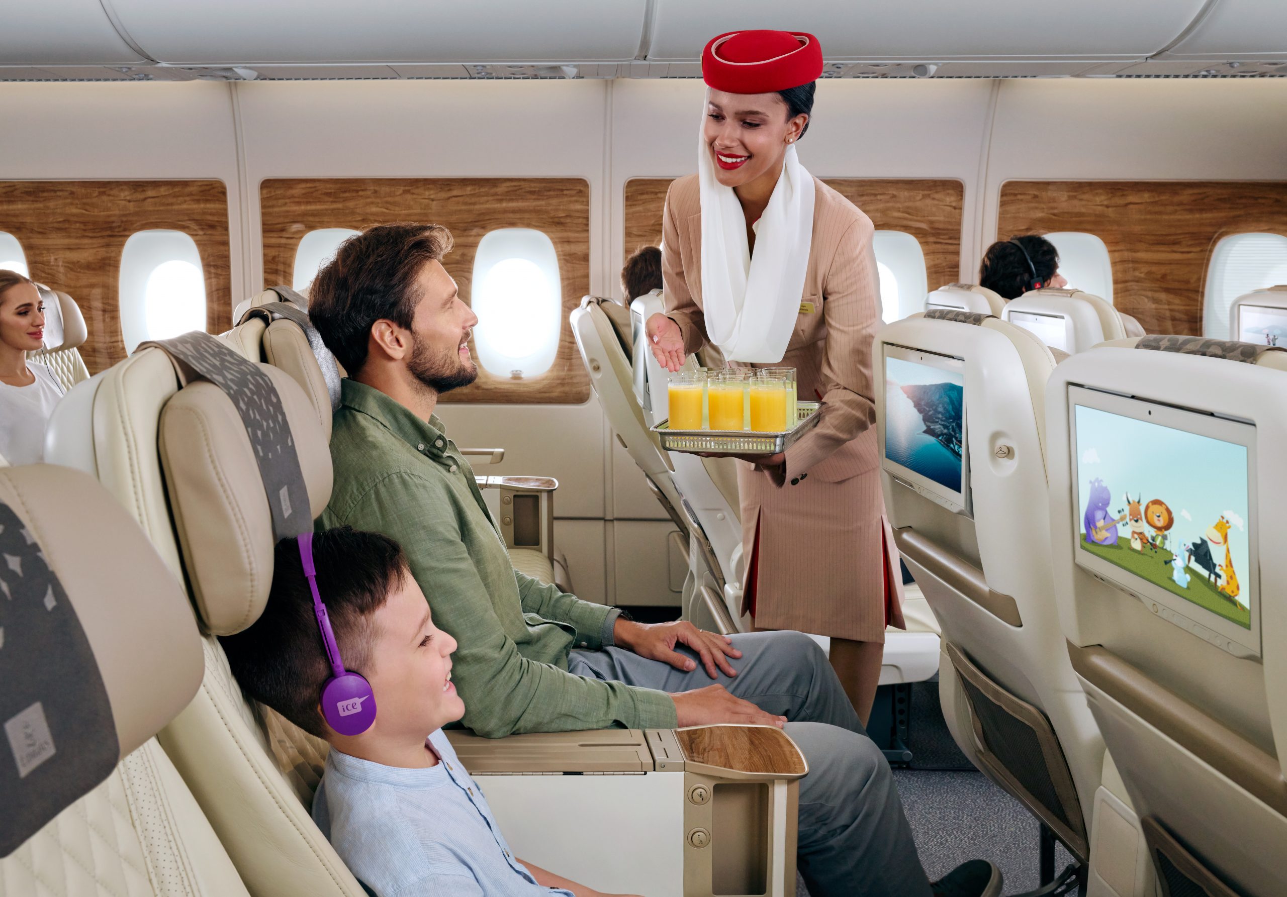 Servindo mais de 110 milhões de refeições em toda a rede da Emirates todos os anos, os pratos da Emirates são nutritivos e deliciosos em todas as classes. Os menus com vários pratos são elaborados pelos chefs da Emirates para destacar produtos sazonais e celebrar ingredientes de origem local. A Emirates utiliza os ingredientes mais frescos para refeições autênticas e de inspiração regional, com muitos fornecedores artesanais fornecendo ingredientes e produtos de alta qualidade, como tâmaras Bateel dos Emirados Árabes Unidos, azeite Monte Vibiano da Itália, queijo feta Yarra Valley da Austrália e saladas e ervas frescas de Bustanica , a maior fazenda vertical do mundo de propriedade dos Emirados.