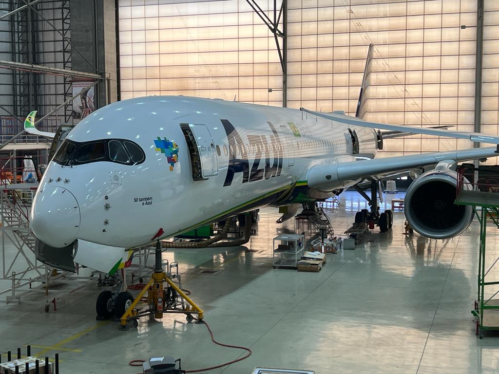 Será impossível não notar as novas e modernas aeronaves A350 da Azul que já estão em operação e complementam a frota da companhia. Com uma estrutura de mais de 70% de itens de última geração, o grande e imponente modelo da Airbus consegue levar mais Clientes a bordo (até 336 por voo), consumindo ainda menos combustível por assento (6%) do que as A330NEO — aeronaves de nova geração e já supereconômicas.