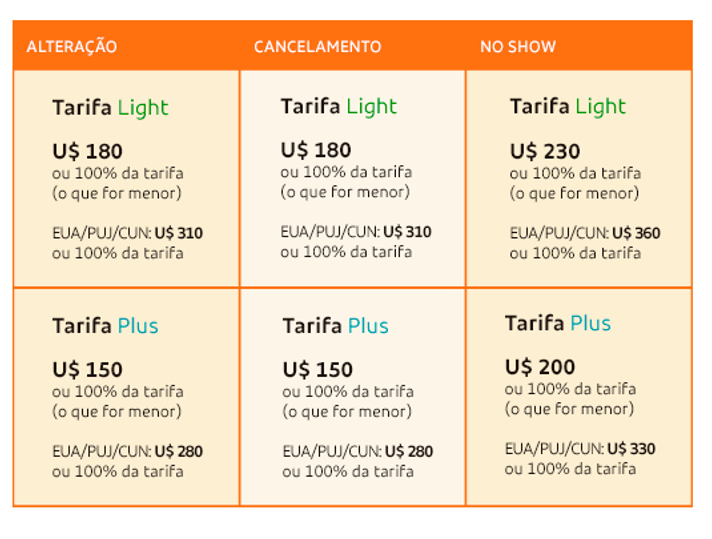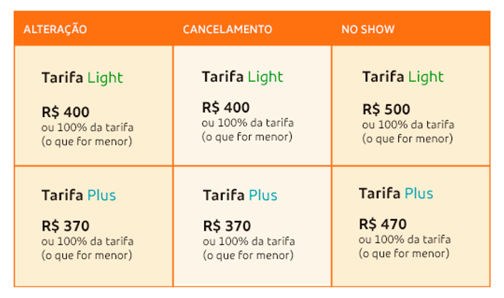 As demais tarifas permanecem com os valores praticados atualmente. Todas as regras e condições, incluindo para compras no exterior, estão disponíveis no site https://www.voegol.com.br/tarifas