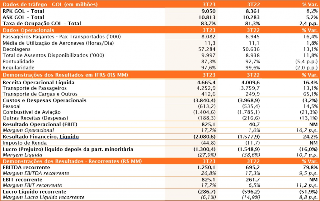 Informações mais detalhadas sobre o resultado do 3T23 estão disponíveis no website de relações com investidores da Companhia (www.voegol.com.br/ri).