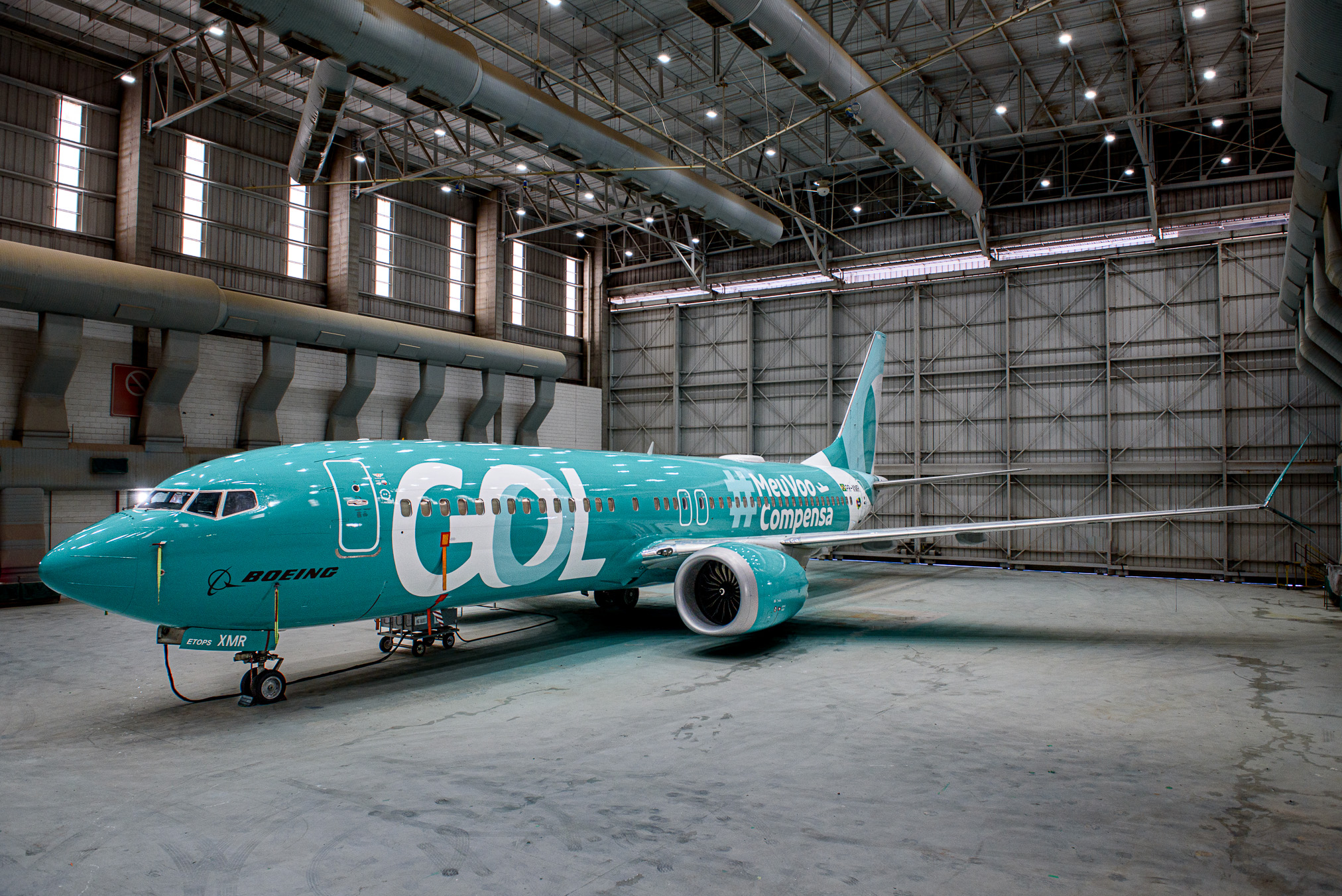 Em uma atitude ousada, sai o laranja e entra o verde quase total na pintura do Boeing 737 MAX da GOL, .