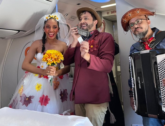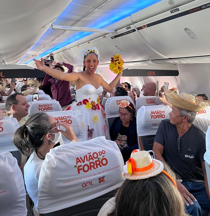 Os Clientes do voo G3 1584, da rota que liga Salvador (SSA) a Campina Grande (CPV), foram recebidos por um sanfoneiro no portão de embarque e brindados com uma guloseima que não pode faltar em festas juninas: pipoca (da marca Pipò). Eles puderam, ainda, presenciar a encenação de um famoso casamento matuto, uma das tradições mais antigas dessa comemoração. Ao final, todos os presentes no voo do forró da GOL participaram do sorteio de uma passagem aérea com direito a acompanhante.