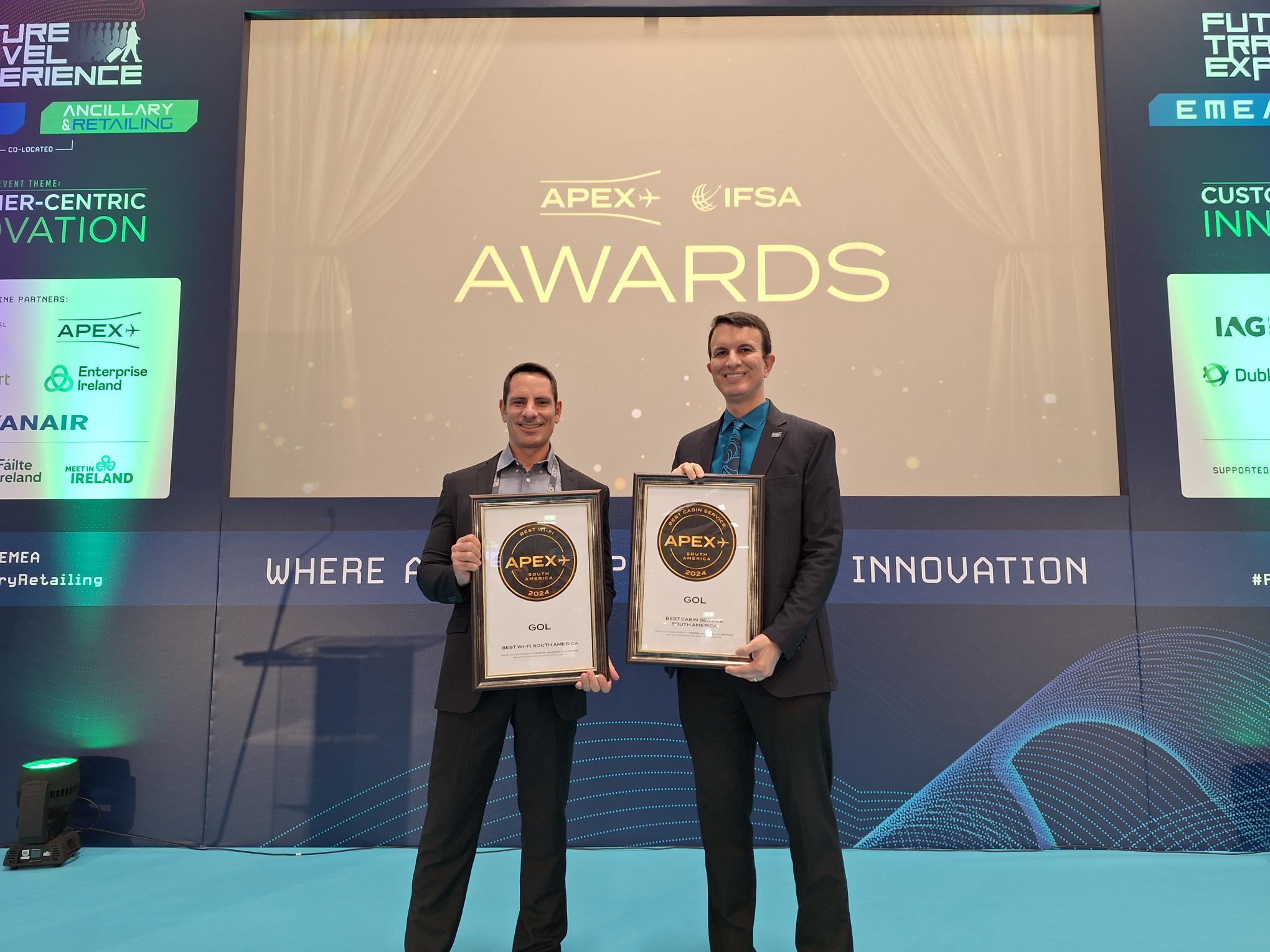 Com muito orgulho e entusiasmo a GOL Linhas Aéreas recebeu na última quarta-feira (12), em Dublin, dois prêmios significativos para a Companhia, que reconhece seus esforços em oferecer a melhor experiência de viagem aos Clientes: Melhor Wi-Fi na América do Sul (2024 Passenger Choice Award® Winner for Best Wifi in South America) e Melhor Serviço de Cabine (2024 Passenger Choice Award® Winner for Best In Cabin Service), que reconhece a melhor experiência a bordo como um todo.