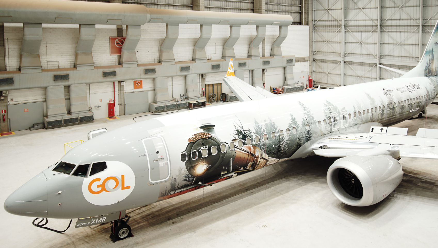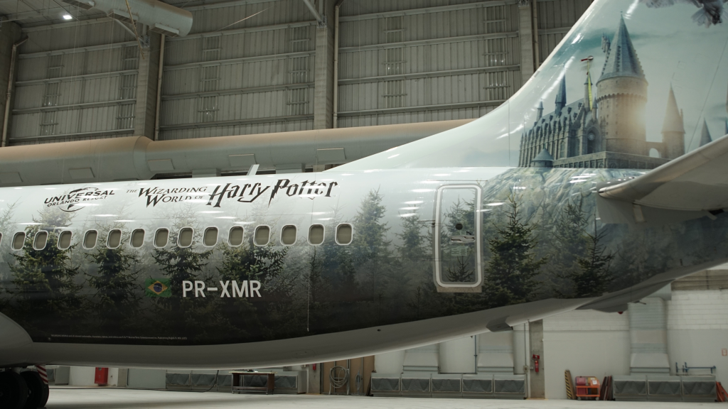 A GOL escolheu uma aeronave Boeing 737 Max, uma das mais modernas em tecnologia e sustentabilidade, para receber a adesivação temática. No desenho, representações de elementos das duas áreas temáticas do The Wizarding World of Harry Potter™ dentro dos parques temáticos do Universal Orlando podem ser vistas, incluindo o Castelo de Hogwarts™, o Hogwarts™ Express, a Floresta Proibida e o feroz dragão no topo do banco bruxo Gringotts no Diagon Alley. O interior do avião também conta com uma adesivação especial para encantar os fãs em todas as etapas de sua jornada.