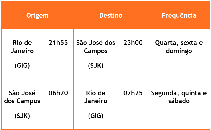 São José dos Campos (SJK) – Rio de Janeiro (GIG): desde 27/03/2024