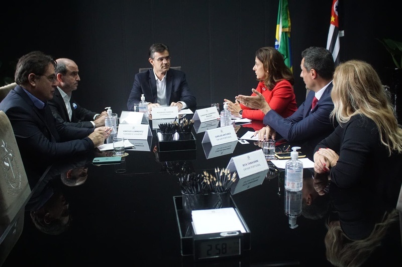Nesta quarta-feira (13), o governador Rodrigo Garcia e os secretários de Relações Internacionais, Julio Serson, e de Turismo, Vinicius Lummertz, receberam a presidente executiva da TAP Christine Ourmières-Widener, no Palácio dos Bandeirantes.