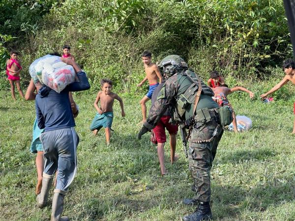 Por dia, em torno de três comunidades são assistidas e recebem alimentos e medicamentos. “Assim, ao longo do dia, entregamos suprimentos a até 10 Comunidades”, relata um dos pilotos do H-60 Black Hawk, Tenente Aviador Luan Nogueira Liguori.