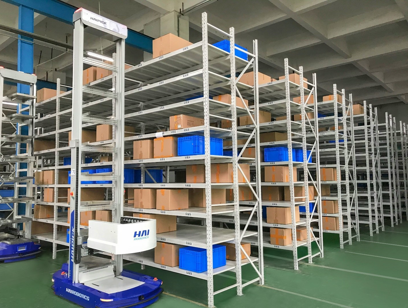 As soluções robóticas móveis autônomas de manipulação de caixas e contêineres (ACR) da Hai Robotics, que automatizam o armazenamento e recuperação de itens e tornam os processos de colocação e retirada de mercadorias eficientes, utilizam robôs guiados capazes de atingir até 9 metros de altura. Esses sistemas condensam a área necessária para armazenar mercadorias e podem operar em CDs e armazéns existentes, bem como nos fundos de lojas de varejo para micro atendimento.