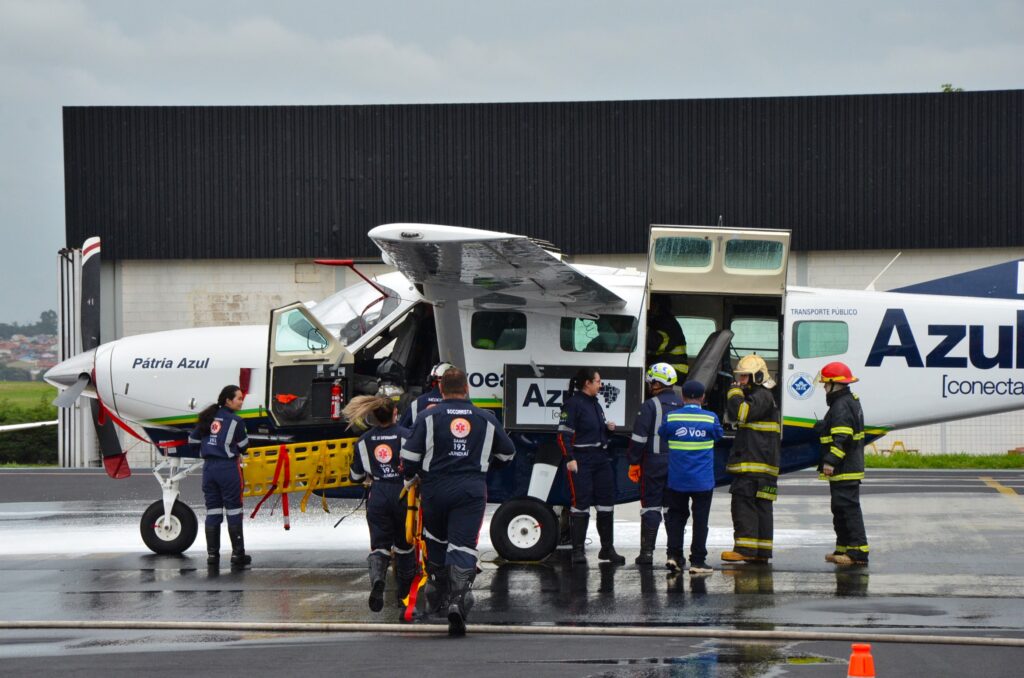 A ação contou com a utilização do caminhão de bombeiros para conter o fogo da aeronave, uma Grand Caravan disponibilizada pela Azul Conecta, e retirada das vítimas, que foram divididas de acordo com a gravidade dos ferimentos e atendidas no próprio local do suposto acidente. Após o primeiro atendimento, elas foram encaminhadas ao Hospital São Vicente de Paulo por comboios do SAMU guiados por agentes de trânsito.