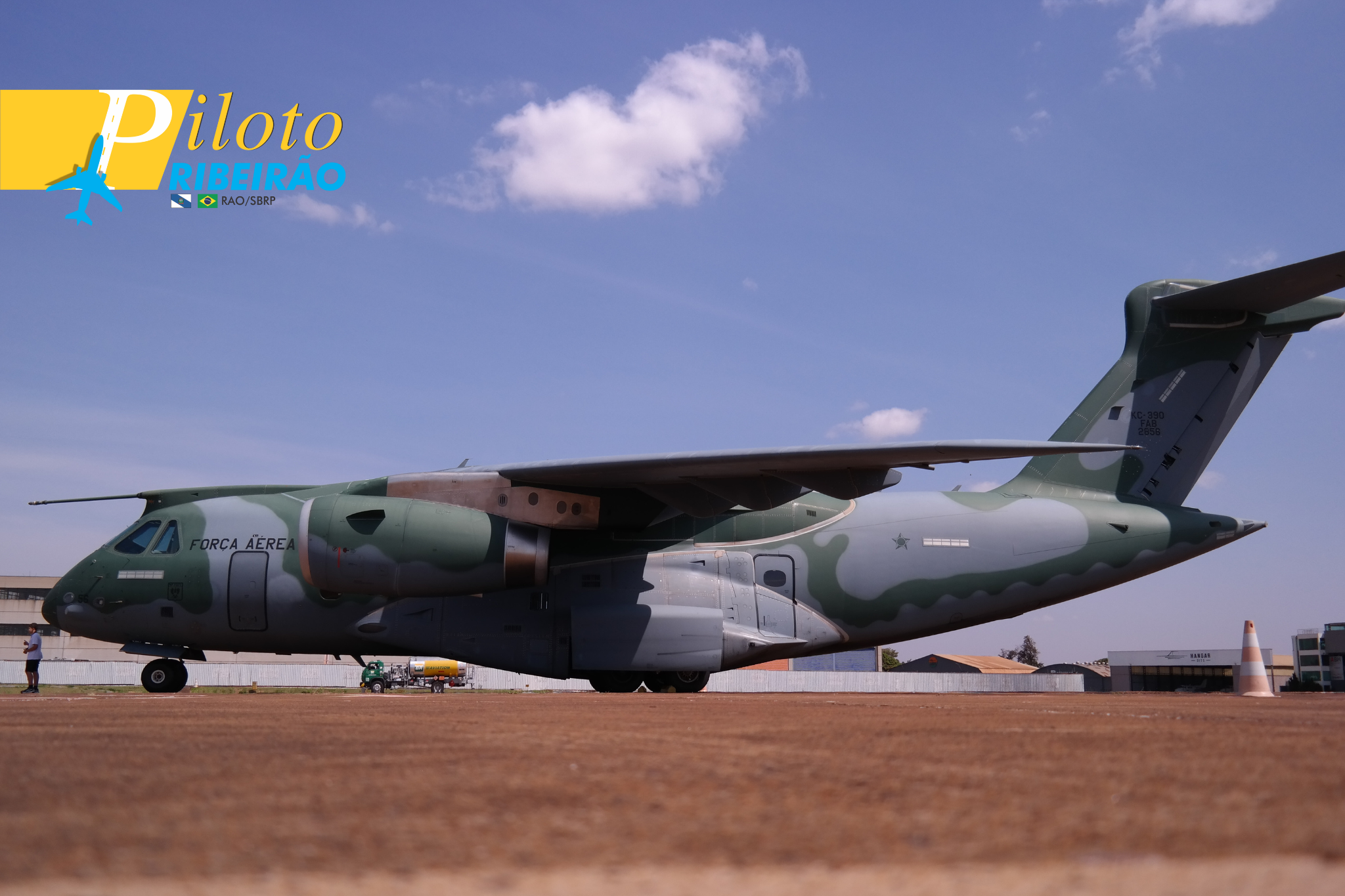 Exclusivo – A aeronave multimissão da Força Aérea Brasileira Embraer KC-390 chega ao Aeroporto Leite Lopes em Ribeirão Preto-SP para .