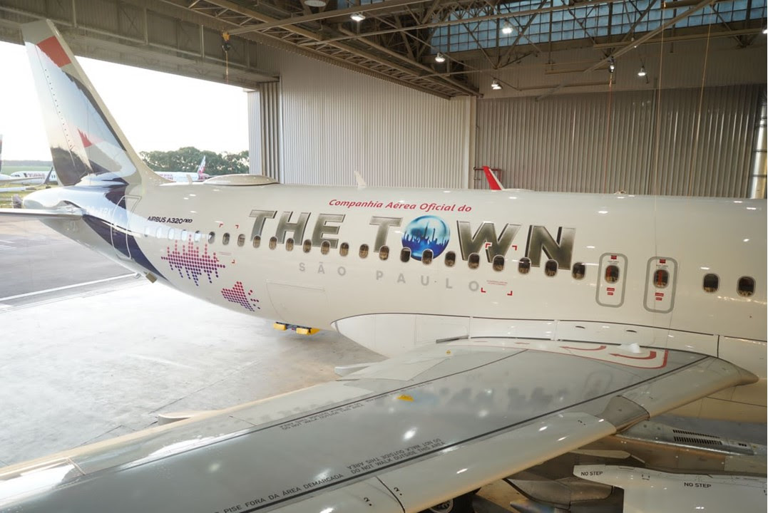 A primeira aeronave adesivada nas oficinas do LATAM MRO de São Carlos (SP) é um Airbus A320neo (matrícula PR-XBK) e conta com a logomarca oficial do The Town na fuselagem, além de imagens em alusão ao evento na parte interna da aeronave. O processo contou com a participação das áreas de Planejamento de Malha, Engenharia e Manutenção da companhia. As aeronaves voarão dentro do Brasil com a ilustração em suas fuselagens até o fim deste ano.