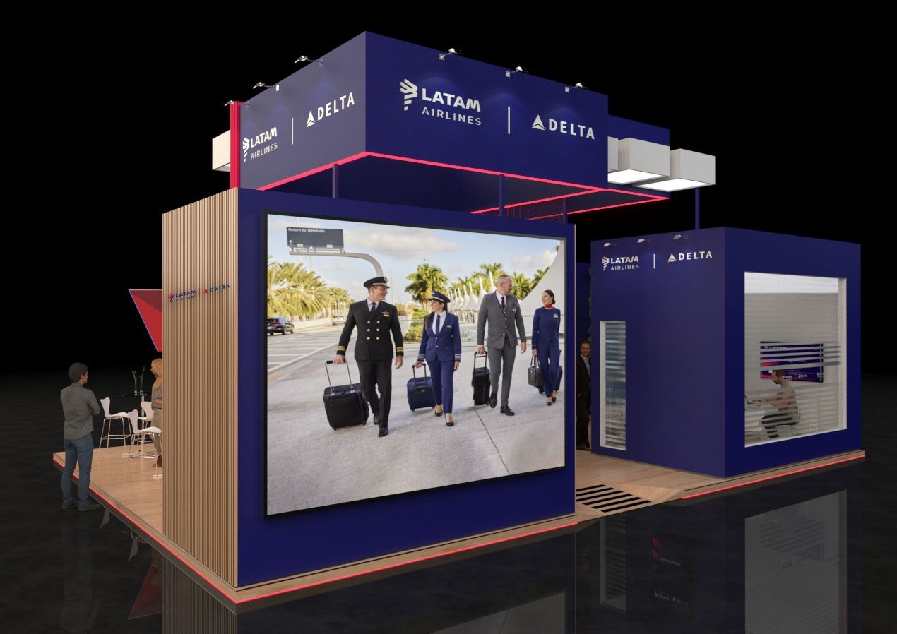 O estande com mais de 88 m² localizado no Centro de Feiras e Eventos Serra Park de Gramado (RS) possui mensagens gráficas da LATAM e Delta Air Lines, além de um espaço propício para estreitar relacionamentos e gerar novos negócios com importantes clientes do turismo. Na entrada do evento há ainda um painel backdrop de mais de 3 metros, para que os participantes façam registros criativos junto às marcas.