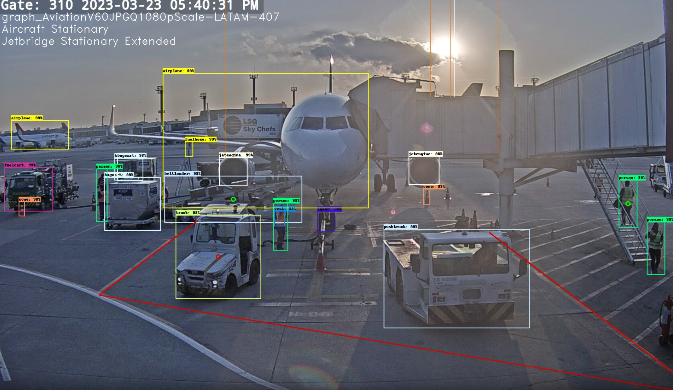 O novo sistema de monitoramento da LATAM no aeroporto de Guarulhos utiliza câmeras e inteligência artificial para rastrear todos os movimentos da operação ao redor de suas aeronaves em solo. Como um verdadeiro raio-x em tempo real, fornece métricas operacionais (atualização dos horários previstos de decolagem, tempo de utilização do portão e tempos de conexão da unidade de fornecimento de energia terrestre). Também permite prevenir danos com objetos estranhos, verificar o status da ponte de embarque/desembarque (finger) e fornece relatórios de conformidade que ajudam a LATAM a manter as medidas de segurança ao redor de toda a aeronave em solo. O resultado é uma operação altamente segura em todos os aspectos.
