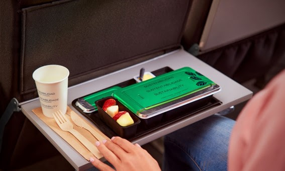 Entre as iniciativas, estão a mudança dos materiais empregados no serviço de bordo (copos, talheres e bandejas) da cabine Economy, substituídos agora por materiais mais sustentáveis como talheres de fibra de bambu, bandejas reutilizáveis, embalagens de papel kraft e copos de papel sustentável certificado. A proposta é acrescida das mudanças realizadas na cabine Premium Business, que incluem a incorporação de bolsas reutilizáveis para comportar os elementos de descanso junto aos novos amenities kits ecológicos para os passageiros. Entre as novidades dos novos amenities kits estão a escova de dentes de fibra de bambu com embalagem de cana de açúcar, embalagem de papel kraft para os tampões de ouvidos e meia e tapa-olhos de plástico reciclado.
