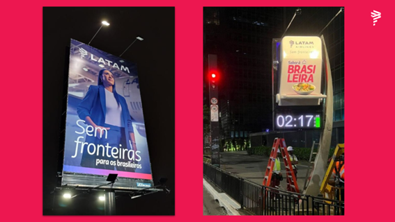 Para reforçar a brasilidade e o seu compromisso com o Brasil, a LATAM instalou agora, em abril de 2023, três grandes outdoors nas principais vias em torno do aeroporto de Guarulhos, em São Paulo, o principal hub (centro de conexões) da companhia no Brasil. Hoje, a LATAM opera voos do aeroporto de São Paulo/Guarulhos para 45 destinos nacionais e 21 internacionais. Adicionalmente, para celebrar o novo cardápio brasileiro que está sendo servido nos voos internacionais da companhia que decolam do País, foram instalados relógios tridimensionais em três endereços da cidade de São Paulo, na Avenida Dr. Chucri Zaidan, Avenida Paulista e Rua Funchal.“São todas essas ações que, apenas reforçam como que somos uma companhia realmente sem fronteiras e que queremos conectar os nossos passageiros cada vez mais com o Brasil e o mundo”, conclui Amira Ayoub.