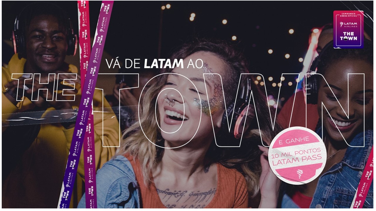 O LATAM Pass, programa de fidelidade mais competitivo do Brasil onde o ponto vale mais, dará 10 mil pontos para o cliente que voar de LATAM para o The Town 2023, em São Paulo. A LATAM, vale lembrar, é a companhia aérea oficial do maior festival de música, cultura e arte de São Paulo, dos mesmos criadores do Rock in Rio. A bonificação especial será concedida a todos que voarem de LATAM durante o período do festival e será creditada mediante a comprovação de compra em latam.com no estande da marca no The Town 2023.