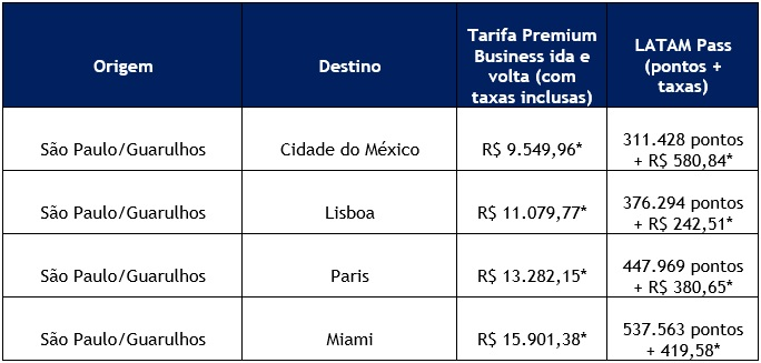 As informações integrais e detalhadas sobre as regras/restrições das tarifas anunciadas, descontos para crianças e pontuação no Programa LATAM Pass estão disponíveis para consulta no site www.latam.com.