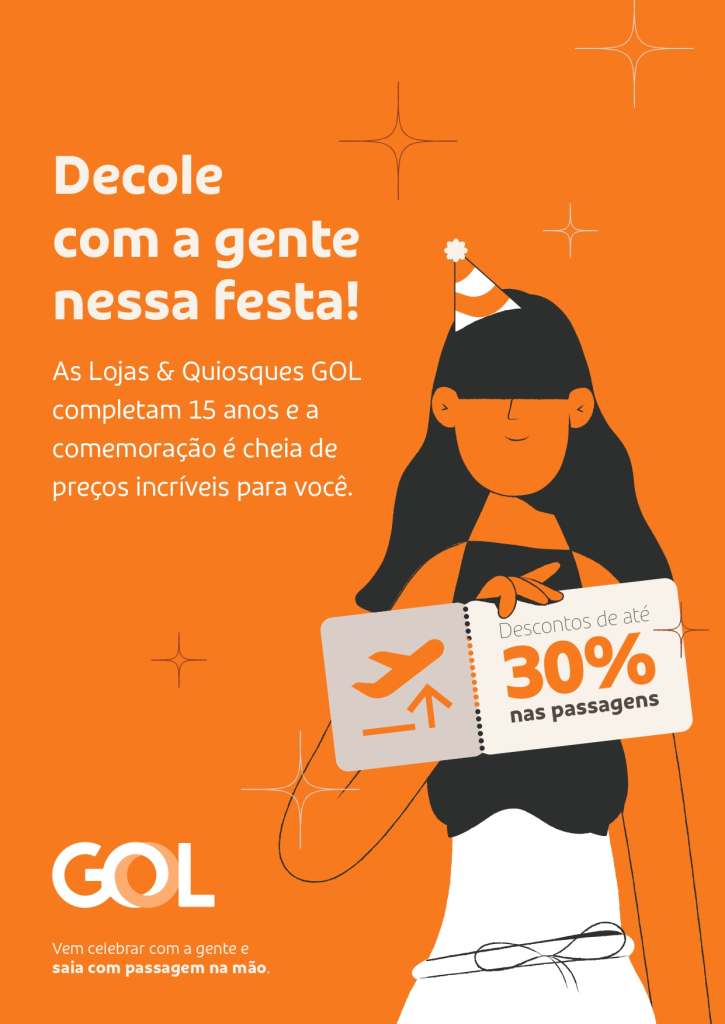 Lojas e quiosques da GOL completam 15 anos com descontos especiais para Clientes
