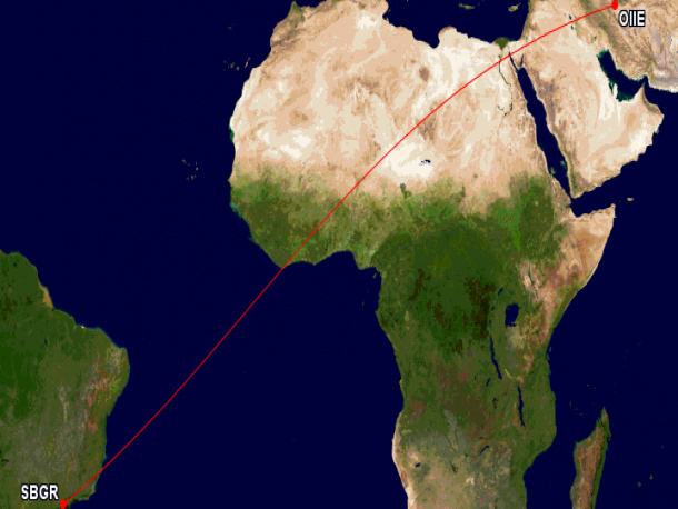 O voo de regresso ao Irã está previsto para o mesmo dia, também transportando passageiros (pax) que embarcarão na aeronave no aeroporto de Guarulhos.