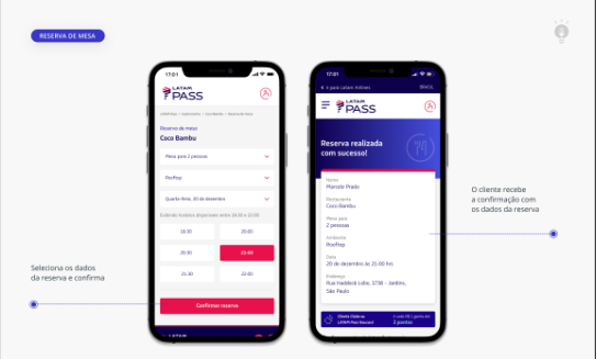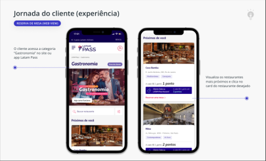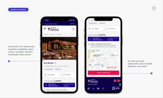 Inovação em parceria com a startup Tagme Food Solution, LATAM Pass Gastronomia foi criado para oferecer serviços de reserva e pontos em renomados restaurantes.