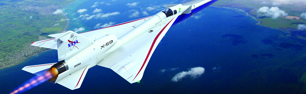 Imagem capa: uma ilustração conceitual da aeronave de pesquisa X-59 da NASA. Crédito: Lockheed Martin.
