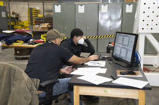 Embora grande parte do hardware para a asa simulada de 6 pés estivesse prontamente disponível para a equipe do Laboratório de Cargas de Voo, algumas peças exigiam as capacidades de chapa metálica do Ramo de Fabricação Experimental da NASA Armstrong, disse Pena. Por exemplo, a raiz do ângulo de varredura da treliça e o ângulo entre as asas da aeronave – conhecido como diedro – exigiam componentes personalizados, juntamente com a placa adaptadora para a interface da célula de carga de três eixos.