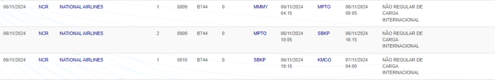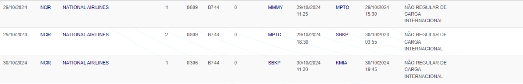 Exclusivo – A empresa aérea americana National Airlines, com sede nos Estados Unidos, solicitou à Agência Nacional de Aviação Civil (ANAC) autorização para realizar um voo cargueiro especial entre o México e o Brasil. A companhia aérea pretende operar em 7ª liberdade, transportando 100 toneladas de autopeças do Aeroporto Internacional de Monterrey, no México, para o Aeroporto Internacional de Viracopos-Campinas, no Brasil. A carga é destinada à fábrica da Hyundai em Campinas, com o objetivo de suprir a linha de montagem que se encontra com capacidade produtiva ociosa.