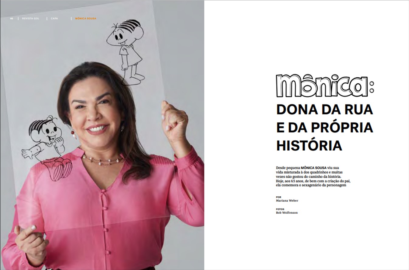 Para celebrar de um jeito único o Mês das Crianças, a GOL, maior Companhia Aérea do Brasil, apresenta uma edição especial da sua revista de bordo com Mônica Sousa. Além de uma entrevista com a inspiração para a protagonista da Turminha mais famosa do Brasil, a edição de setembro/outubro da revista GOL também traz atividades lúdicas que podem ser feitas durante o voo (págs. 84 e 85), atendendo a passageiros de todas as idades.