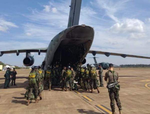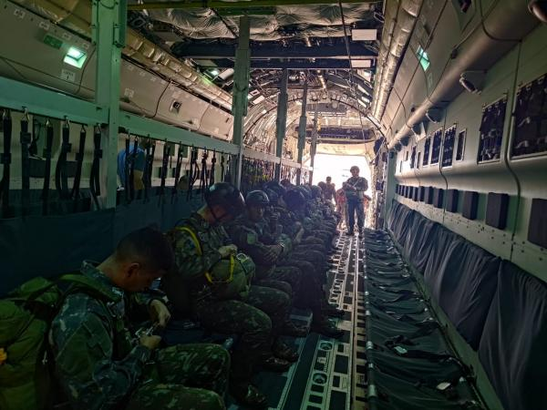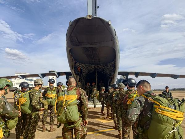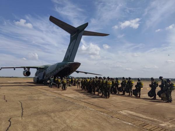 A operação examina as capacidades do KC-390 Millennium em Assalto Aeroterrestre e atividades associadas.