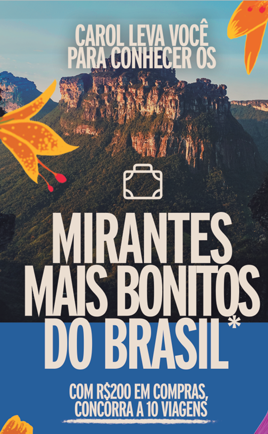 A cada R$ 200,00 em compras, o cliente poderá se cadastrar no site https://www.viajecomacarol.com.br/ para receber um número da sorte e concorrer a 10 viagens incríveis para conhecer alguns dos mirantes mais bonitos do país. A campanha segue até o dia 30 de junho de 2025, com sorteios programados para os dias 03 de junho e 08 de julho.
