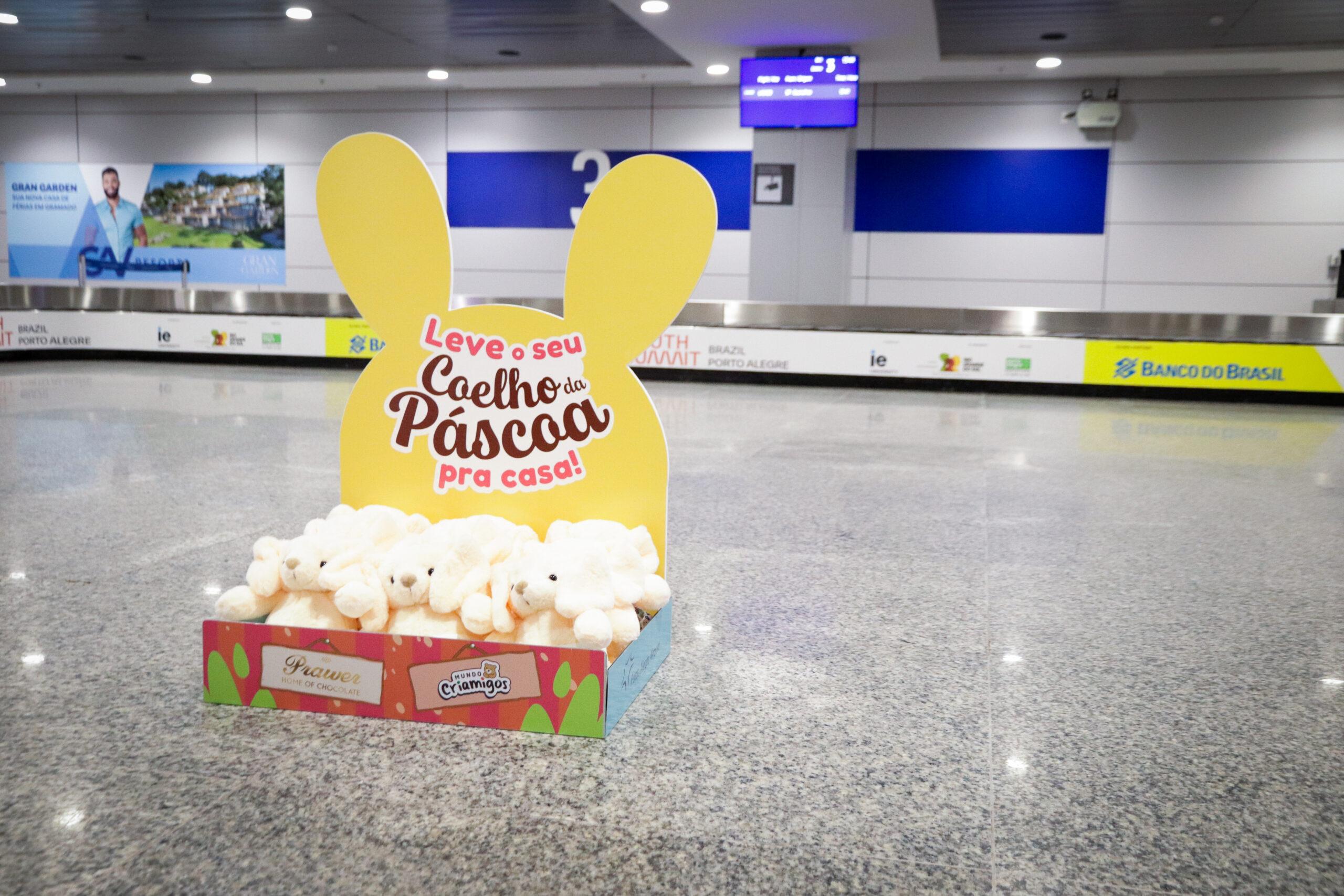 Uma surpresa recepcionou passageiros que desembarcaram nos aeroportos de Porto Alegre e Fortaleza, nesta quinta-feira (17/04). Ao chegarem nos terminais e irem até as esteiras de bagagens, os viajantes encontraram coelhinhos de pelúcia colocados entre as malas, um presente de Páscoa produzido em parceria entre o Parque do Mundo Criamigos, Prawer Chocolates e Fraport Brasil, administradora dos aeroportos.