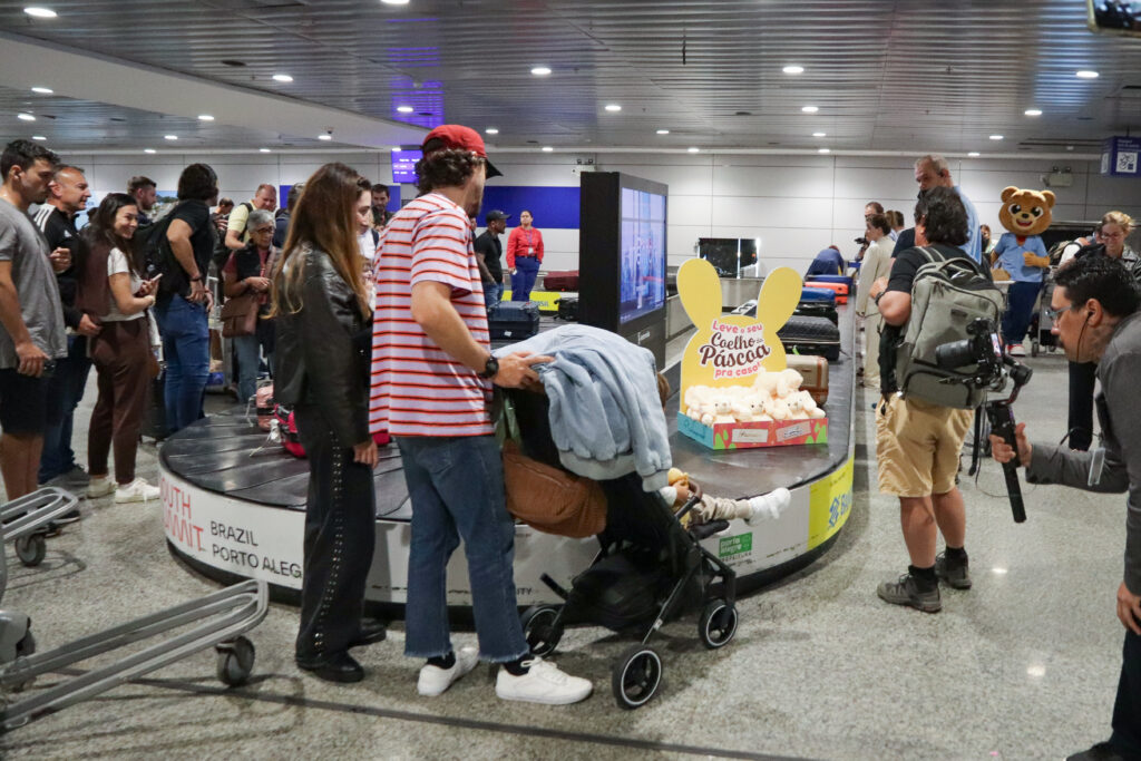 Passageiros são surpreendidos com presentes de Páscoa na esteira de bagagens dos aeroportos de Porto Alegre e Fortaleza