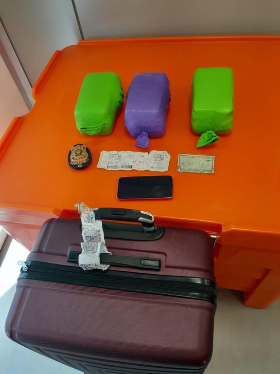 A droga encontrava-se escondida dentro de uma mala, envolvida por invólucros de plástico, dividida em três tabletes. A passageira veio de Brasília/DF, com destino a João Pessoa/PB, e foi identificada pelos policiais federais que realizavam as inspeções.