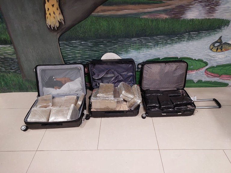 A primeira mala apreendida estava sob posse de uma mulher de 19 anos, que levava consigo mais de 11kg ( 11.390g) de maconha, a segunda mala estava sob posse de um homem de 27 anos que continha mais de 16 kg (16.210g) de maconha em seu interior e, por fim, foi apreendida mala com mais de 11 kg (11.800g) de maconha que estava despachada e foi sinalizada pelo agente canino K9.