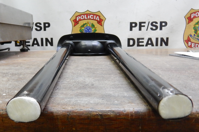 Na delegacia da PF, a mala da passageira foi aberta e de dentro das seis hastes foram retirados dois quilos de cocaína. A passageira, nacional de Angola, tinha como destino final de sua viagem a Turquia.
