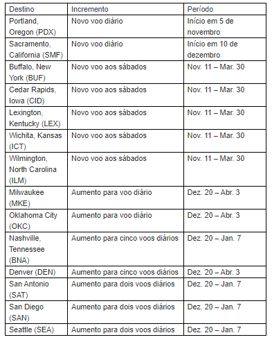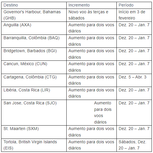 - Oito novas rotas serão inauguradas, incluindo o novo destino internacional Governor’s Harbour, Bahamas (GHB).