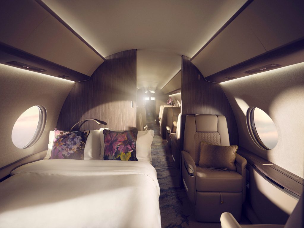 O G700 representa o futuro das viagens aéreas privadas, oferecendo uma experiência de voo superior com design, tecnologia, conforto e estilo incomparáveis. Além de uma cabine de passageiros excepcionalmente espaçosa, composta por quatro áreas de estar individuais, a aeronave inclui uma cabine traseira privativa dedicada com cama fixa permanente.