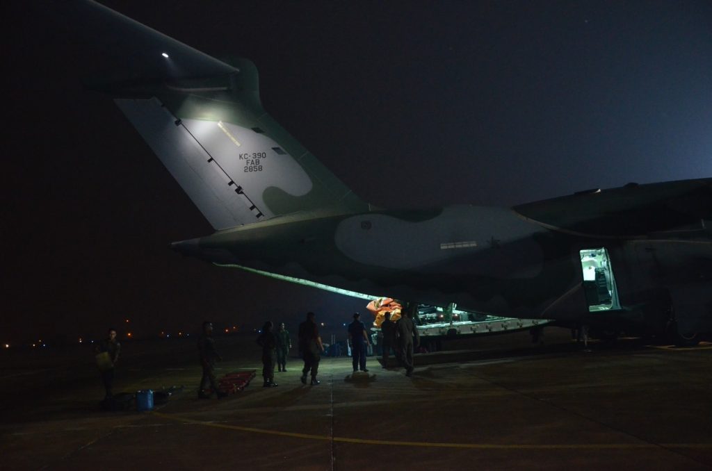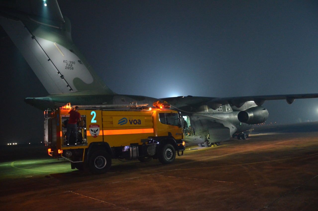 O governador Tarcísio de Freitas sobrevoou as regiões atingidas neste sábado (24) e esteve no aeroporto, destacando a mobilização de esforços para combater o fogo em todo o estado, com foco em Ribeirão Preto, que teve a decretação de EMERGÊNCIA. A Força Aérea Brasileira enviou 01 aeronave KC-390 (combate à incêndios), que foi abastecida com 20.000 litros de água pela Rede VOA, por intermédio do poço artesiano que suporta seus caminhões contra-incêndios. A operação de abastecimento foi encerrada às 2h da manhã.