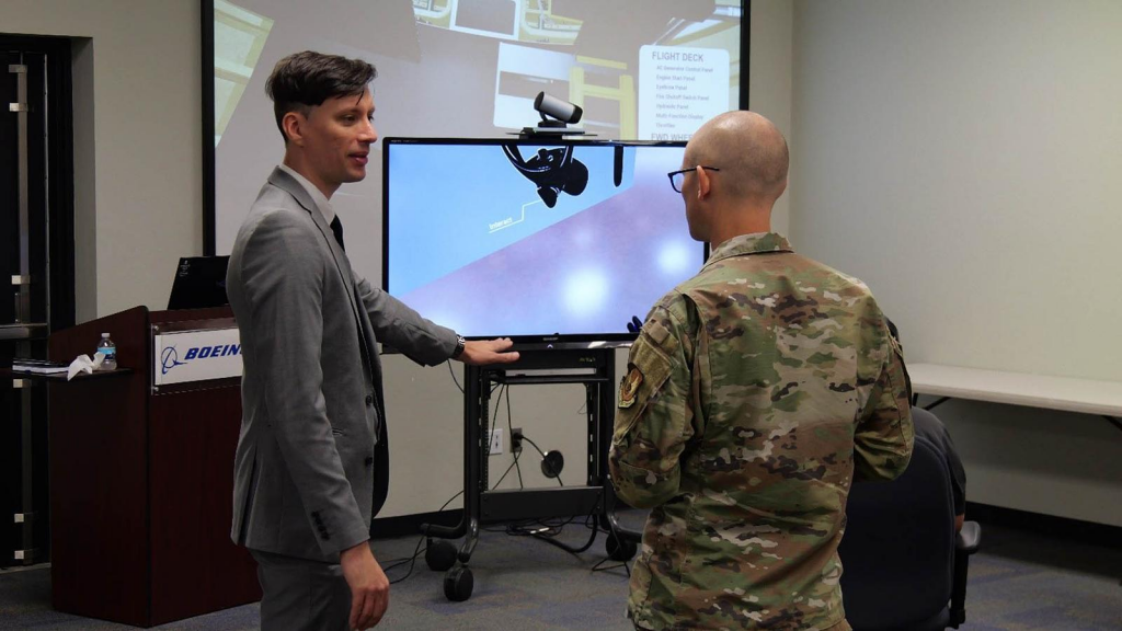 A equipe da Boeing Oklahoma City usa tecnologia 3D para mostrar à Força Aérea dos EUA como os novos motores .