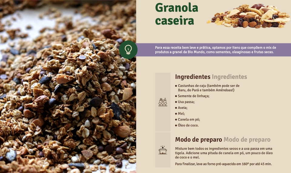 Pensando nisso, neste mês de fevereiro, a Bio Mundo criou um e-book especial com diversas receitas práticas e saudáveis, com ingredientes que você encontra dentro das unidades da marca.