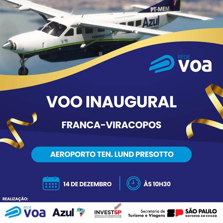 Rede VOA e AZUL iniciam voos comerciais em Franca neste sábado (14)