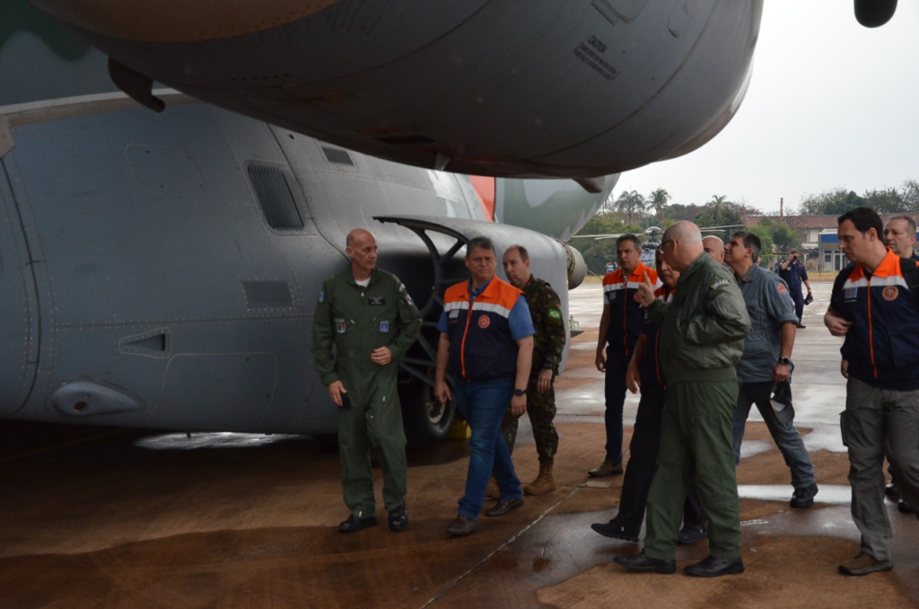 Tarcísio também fez um voo no avião KC-390 da Força Aérea Brasileira (FAB), que auxilia no combate às chamas em Ribeirão Preto e está no pátio do aeroporto desde o sábado à noite, abastecido com 12 mil litros de água. O governador frisou a importância da união de esforços com municípios e o governo federal, por meio das forças armadas, para combater o fogo. Durante o voo do KC-390, foram identificados apenas pequenos focos de incêndio, por conta da chuva que caiu em diversas áreas neste domingo (25). Assim, a aeronave continuará de prontidão no Aeroporto de Ribeirão Preto durante a semana para prestar apoios necessários caso o tempo volte a ficar mais seco.