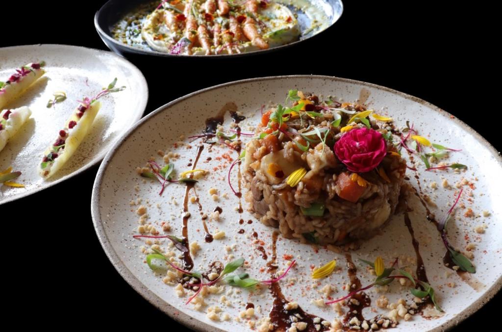 Alguns tipos de entradas são destaques, como o snack de tapioca recheado com creme de boursin de cabra, cubos de beterraba assados com especiarias, damasco, pimenta rosa e canela em pó para finalização. A burrata de búfala com confit de tomates coloridos, figo fresco, rúcula selvagem e pesto de PANCs. E a nutritiva porção de baby cenoura glaceada, com creme azedo de castanhas, pistaches, folhas de hortelã e molho de laranja.