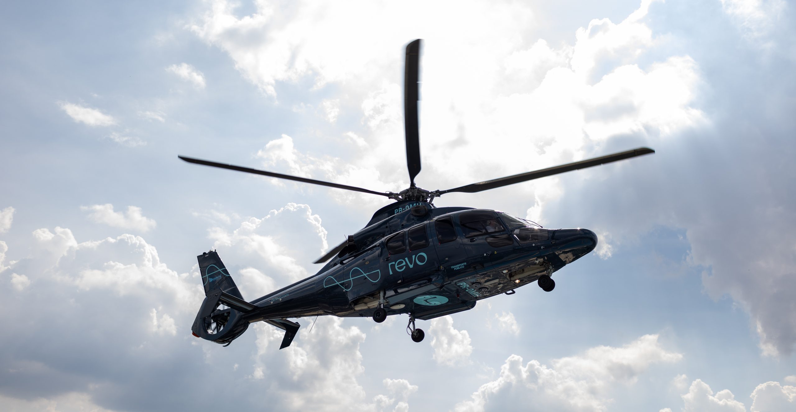 Lançada em agosto de 2023, a Revo opera atualmente com rotas a partir de São Paulo. Com foco no público de alta renda, a entrega da Revo tem alguns outros diferenciais como serviço de primeira classe, transporte terrestre em carros executivos, lounges e hosts exclusivos, plataforma de tecnologia proprietária com inteligência artificial – reserva via app, site ou concierge – helicópteros bimotores, tripulação dupla e segue os padrões de segurança do setor.