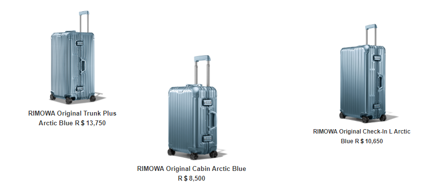 A partir do dia 22 de junho, a RIMOWA Original Arctic Blue Cabin (R$8,500), a RIMOWA Original Arctic Blue Check-In L (R$ 10,650), a RIMOWA Original Arctic Blue Trunk Plus (R$13,750), RIMOWA Personal Aluminium Cross-Body Bag em Arctic Blue (R$10,100) e RIMOWA Never Still Arctic Blue Flap Backpack Large Nylon (R$9,100) e RIMOWA Never Still Arctic Blue Flat Pouch Nylon (R$ 2,900) estarão disponíveis nas lojas RIMOWA de todo o mundo e online em RIMOWA . COM