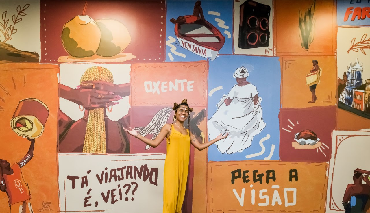 O Salvador Bahia Airport – integrante da rede VINCI Airports – recebeu uma ocupação artística que promete ser o mais novo point de selfies do Aeroporto. A autora é a artista plástica baiana Raiana Britto, que preparou uma ilustração reunindo cenas do cotidiano de pessoas negras que vivem em Salvador. O painel está instalado na parede próxima à entrada do embarque, no 2° pavimento. A ideia é dar visibilidade a uma jovem artista e promover a diversidade no ambiente aeroportuário.