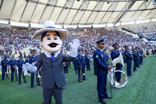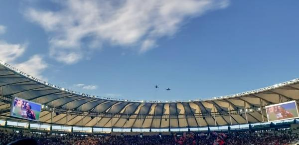 O ponto alto da homenagem ao Patrono da Aeronáutica Brasileira foram os sobrevoos de caças F-5M da Força Aérea Brasileira (FAB). As aeronaves cruzaram os céus do estádio sob olhares atentos e curiosos de aproximadamente 70 mil pessoas.