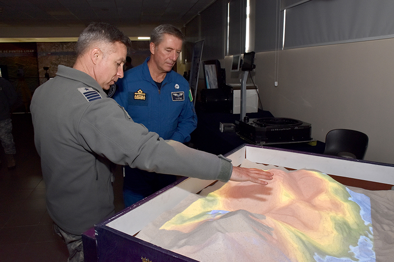 Para encerrar o encontro, a delegação italiana, acompanhada pelo Diretor do Serviço Aerofotogramétrico, Coronel de Aviação (A) Jaime Fernández, percorreu a exposição estática realizada por especialistas da SAF, onde aprenderam sobre a elaboração de cartografia aeronáutica, trabalhos aerofotogramétricos com drones, os diferentes sensores aéreos do Serviço e os visualizadores web que permitem a entrega de soluções e a divulgação da informação geoespacial gerada no SAF.