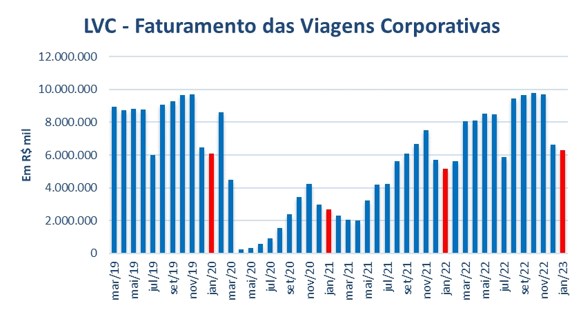 Vale destacar que em janeiro de 2022 se acentuaram os casos de contaminação pela variante Ômicron, desencadeando cancelamentos e remarcações de viagens. Porém, mesmo com esse cenário, o desempenho de janeiro deste ano foi o melhor para o mês desde 2015, já considerando a inflação do período.